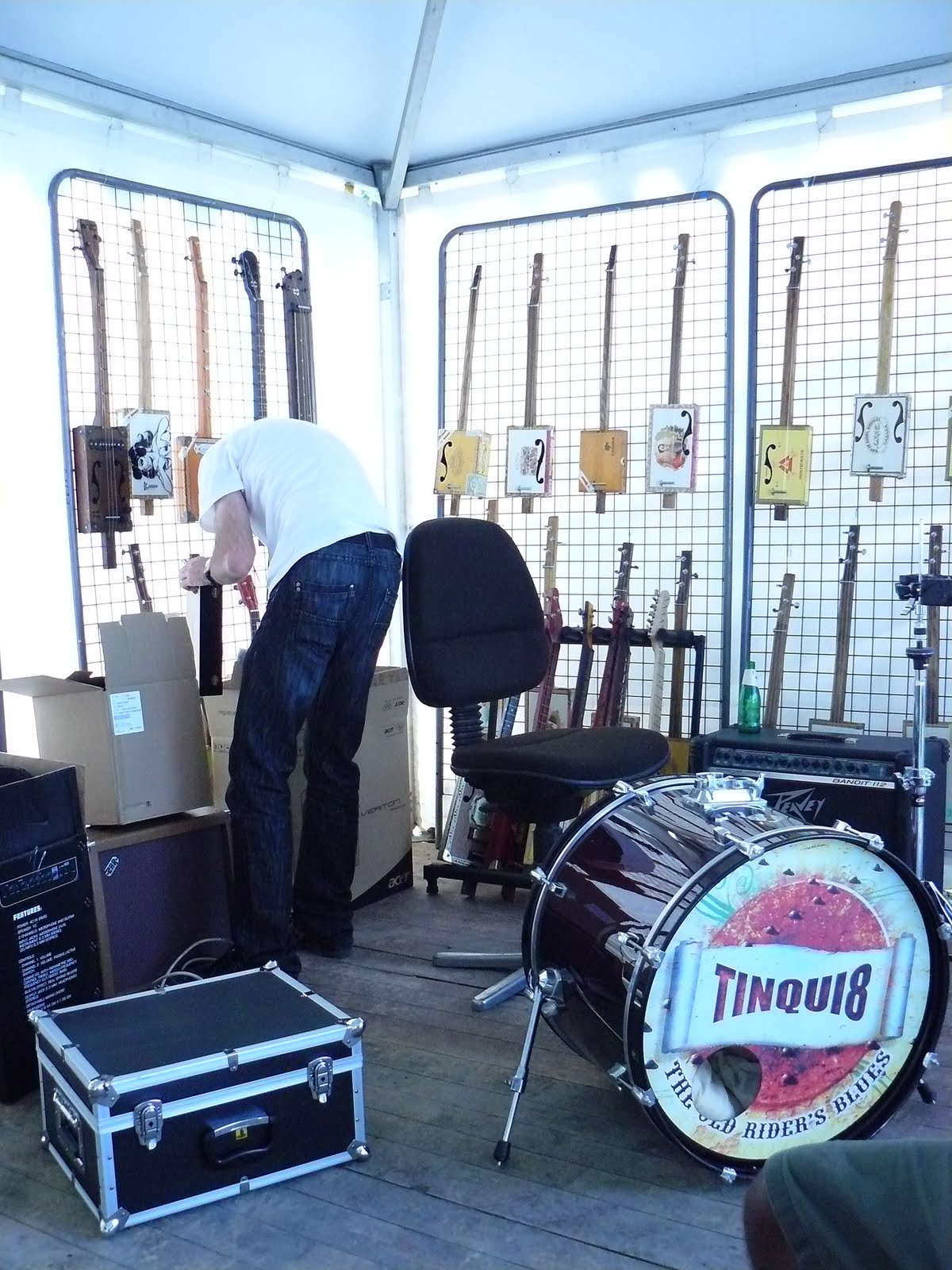 Mise en carton des cigar box guitar !départ vert le festival..Pour rejoindre le stand Tinqui8 & marcelus CBG sur le site du COGNAC BLUES PASSION 2011 .